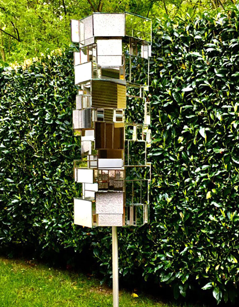 Constructie XXXIX, 2024, mirror, cedar wood, inox steel, 180 x 33 x 33 cmConstructie XXIX, element 28, 2017, cedarwood, mirrorglass, 41 x 24 x 24 cm