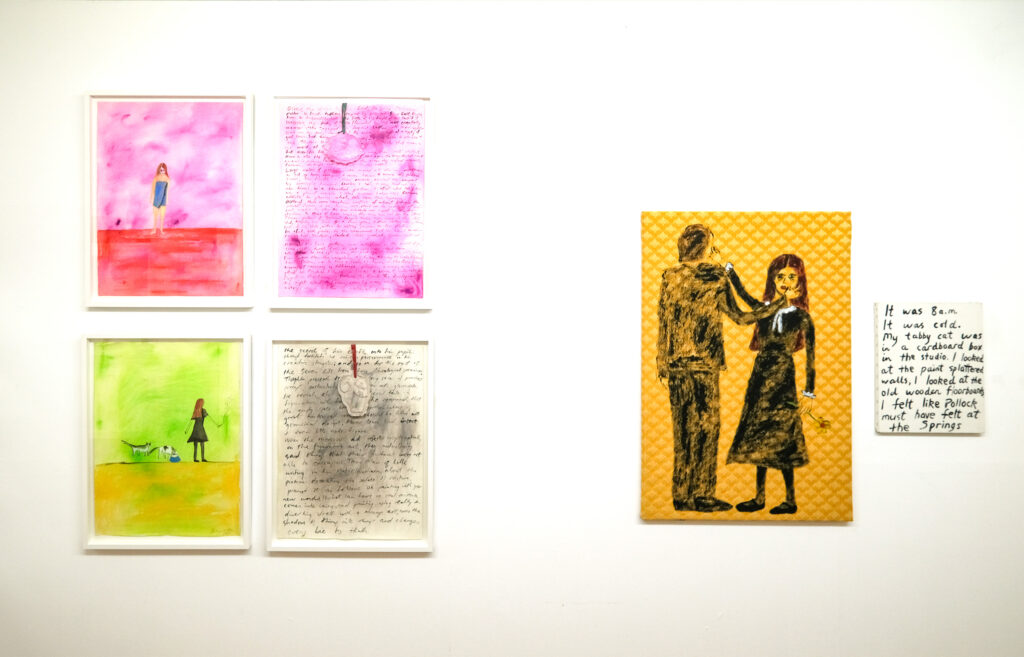 Jenny Watson is a leading Australian artist whose conceptual painting practice spans more than four decades. Curated by MCA Curator Anna Davis this survey exhibition features works from the 1970s to the present, including examples of Watson’s early realist paintings and drawings, and a number of key series of works on fabric. Inspired by both punk and feminism, Watson’s work uses distilled imagery and abbreviated text to create an intimate interior world. She has travelled widely since the 1970s and employs textiles collected on her travels as the surface for many of her paintings, which also often include collaged materials such as images from magazines, horse’s hair, ribbons, bows and sequins. Many of Watson’s works feature self-portraits and alter egos, a cast of longhaired women, horses, ballerinas, rock guitarists and cats, who enact life’s ongoing psychodramas. Intertwining autobiography and fiction, her work incorporates a diary-like voice that is delivered with deadpan wit and seems to relay the everyday experiences, dreams and desires of a self-proclaimed suburban girl. The relationship between text and image is central to her work, which frequently includes a small panel of hand painted text that sits alongside a larger image, undercutting or changing its meaning.